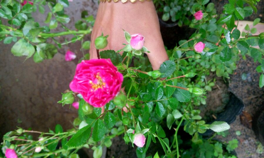 每年都忍不住去干一下坏事,昨天带着作案工具,剪刀一把,丝巾一条,剪了两大把蔷薇花,枝干用丝巾包好,一束带给妈妈,一束自己插瓶。