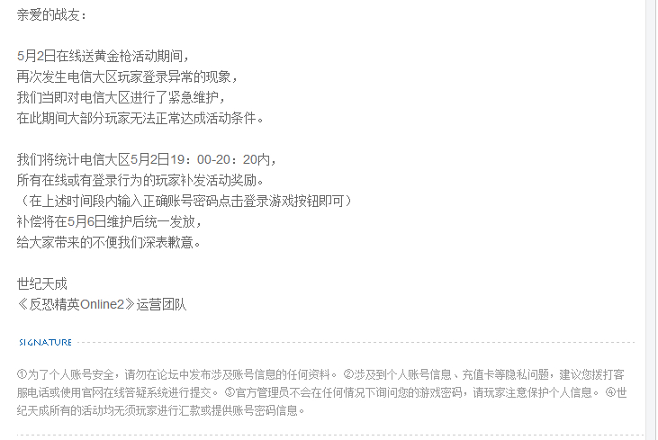我只想说就这样的服务器跟网络维护工作,™腾讯的都比你好了起码人家腾讯不会没事平白无故就要及时维护!竟然官方要搞活动能不能先搞好网络维护跟服务器的维护工作在搞活动?