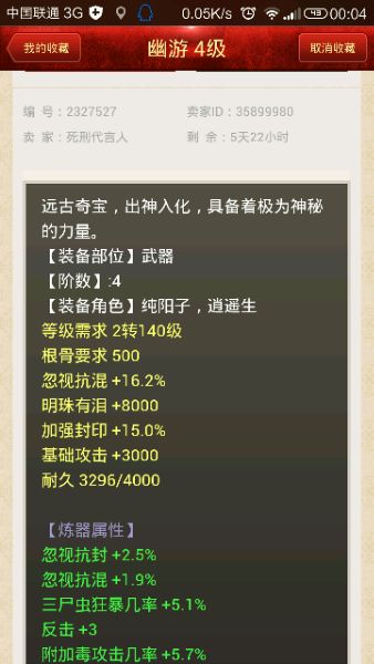 老版4阶无属性仙器