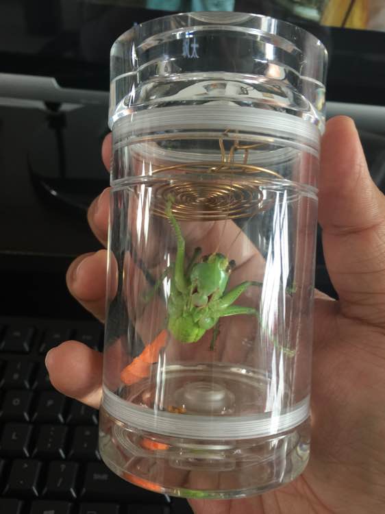 回复 人工湖湖长 :嗯,这种蝈蝈叫声比较烦人,少喂点儿。而且放这种罐里声音更吵