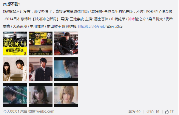 【不过阿婆主有在微博放资源出来,虽然毛子版本有点奇葩,清晰度也麻麻,但是作为望梅止渴也不错,期待20号蓝光