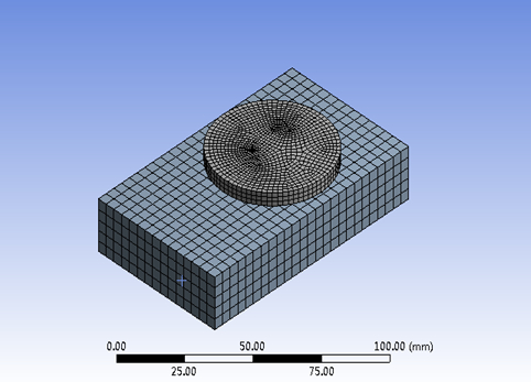 A为圆形薄膜,B为人体组织。A吸附在B上,吸附部分为真空状态。现给A一个谐响应激励,分析A薄膜和B人体组织的振动分析状态