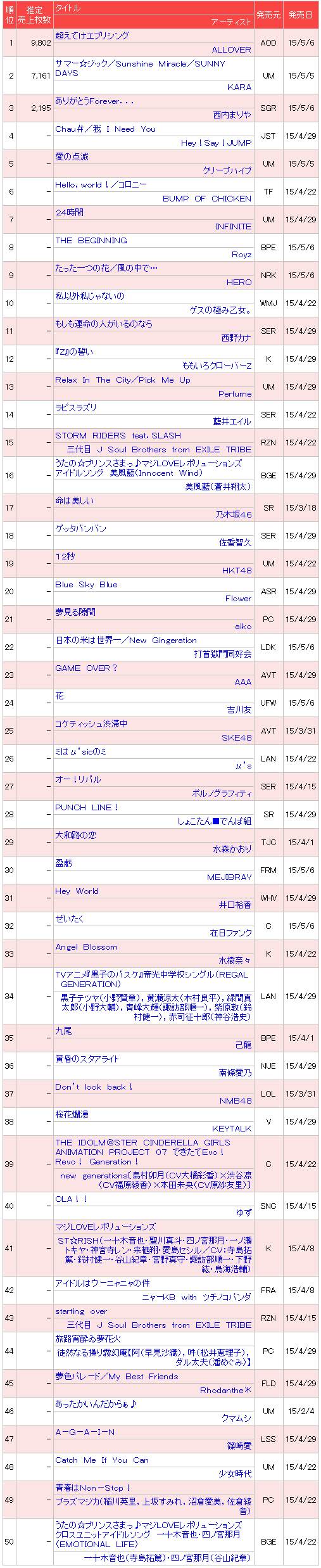 【日榜单】2015/ 05/ 06付