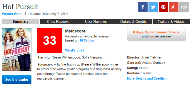 希望《Hot Pursuit》观众反映好一点