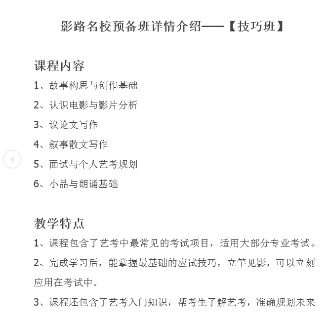 影路站台名校预备班 技巧班招生简章