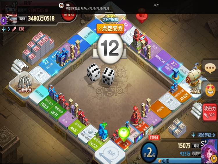 第四个景点,用了3个单双都抢不到。对手打boss,10.8.8一轮就打死。