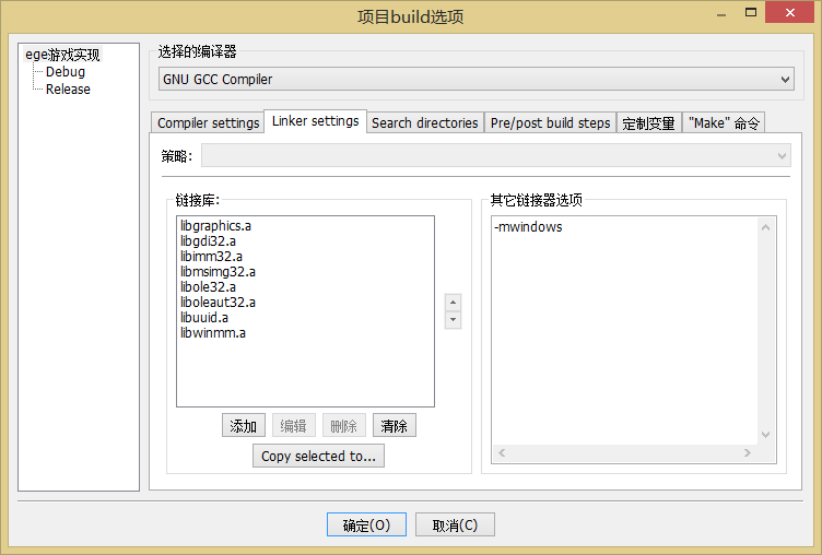 新人一枚,求教使用EGE库到底怎样配置项目选项呢?