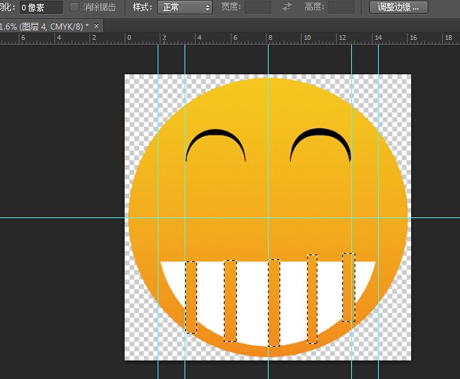 13.整理图层。因最初做图层时,可能没有分离好图层,或者合并好,或者制作得有些凌乱,或者画得不太好。所以需要整理。眼睛层何为一层。嘴巴层合为一层,眉毛单独一层脸单独一层。并使用移动工具(在选区状态下按住ctrl也可),移除参考线(移动到标尺那里就没了)。是为了方便修改,和日后的使用(可能有其他用途)。也可以忽略。