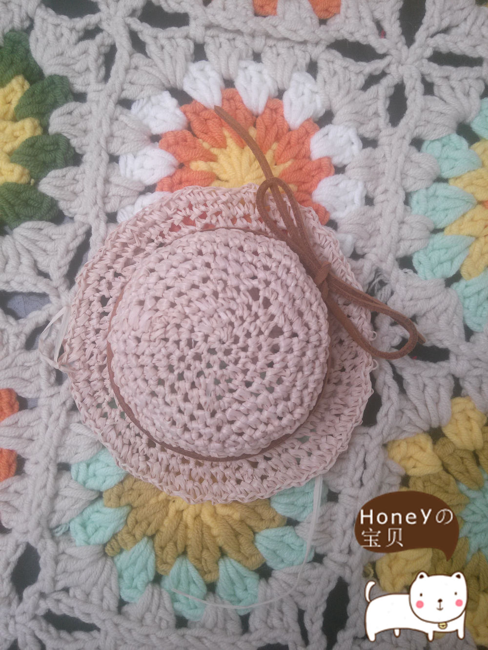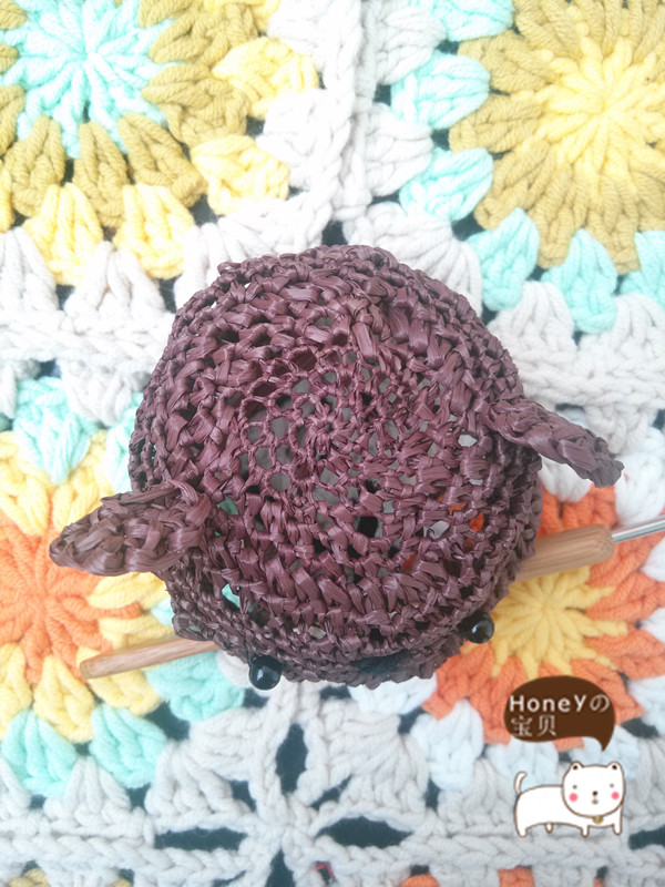 F款 小熊草帽【这款几几觉得换浅荞麦颜色应该效果会更加棒棒哒!】不过几几做的样品的咖啡色的~【顺表放一张小苹果和小熊佩戴图