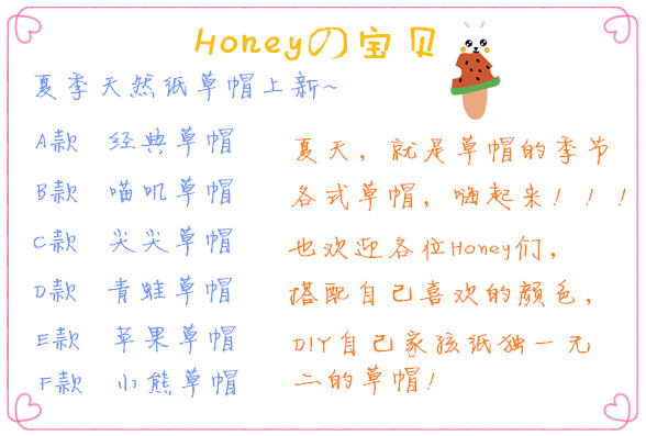 ================暂时就到这里过啦~几几会持续更新草帽款式的,欢迎Honey们多来逛逛哟~嘿嘿