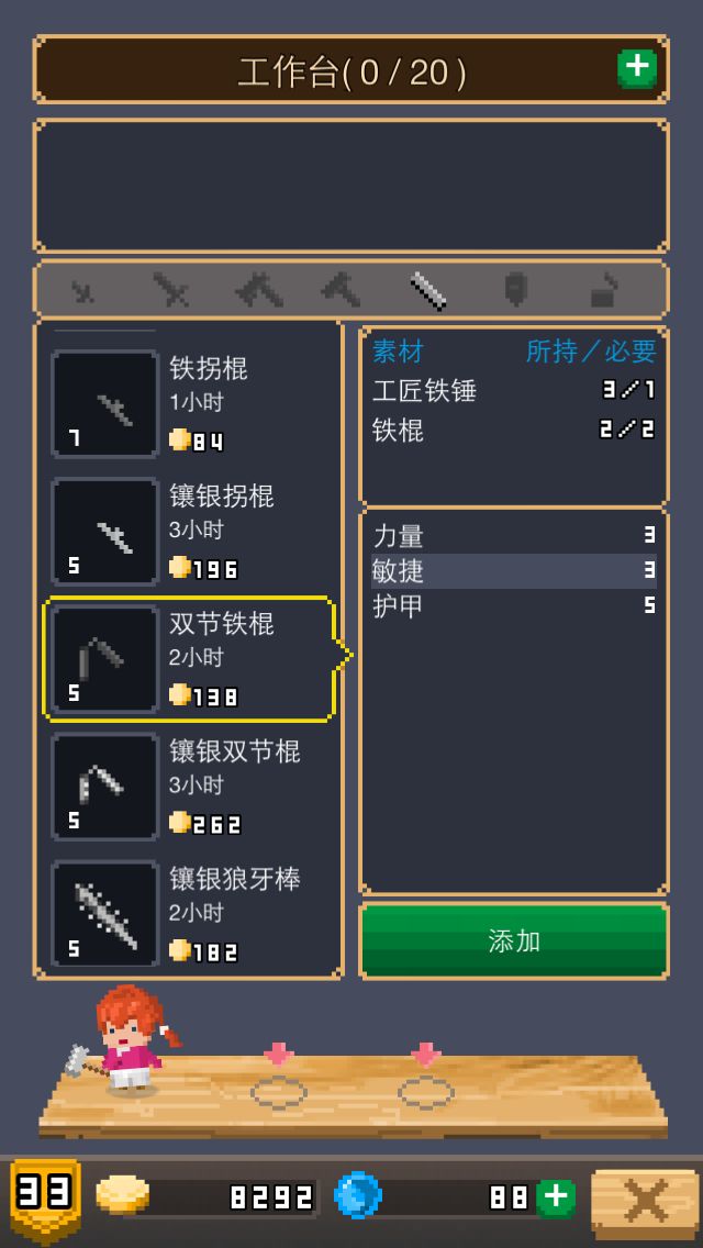 回旋镖分支只做出一个,也是工匠锤和两个匕首