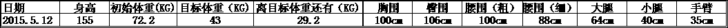 上个礼拜,减重1.4斤。臀围和大腿围小了1cm。