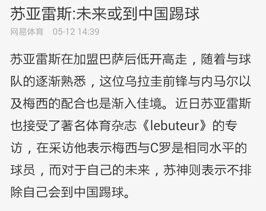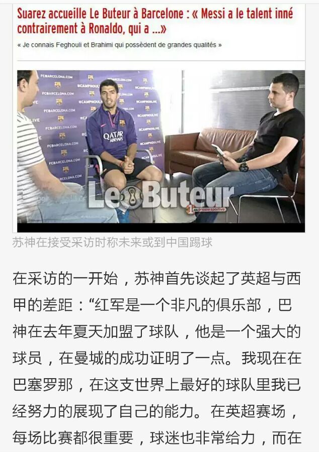 苏亚雷斯:未来或到中国踢球
