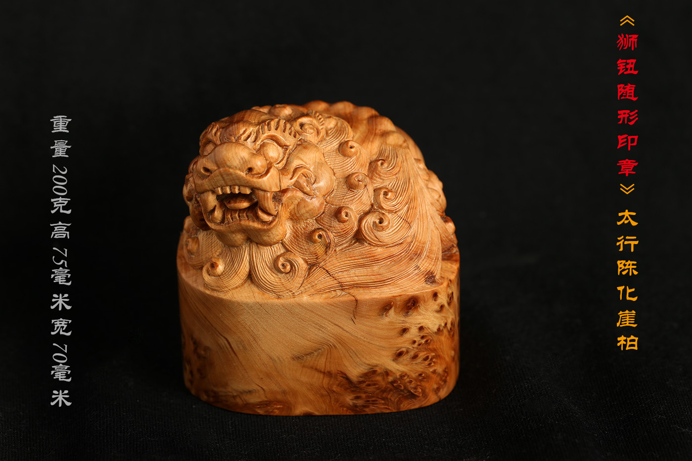 太行崖柏陈化老料《狮钮随行印章》