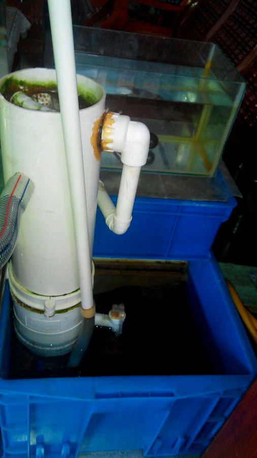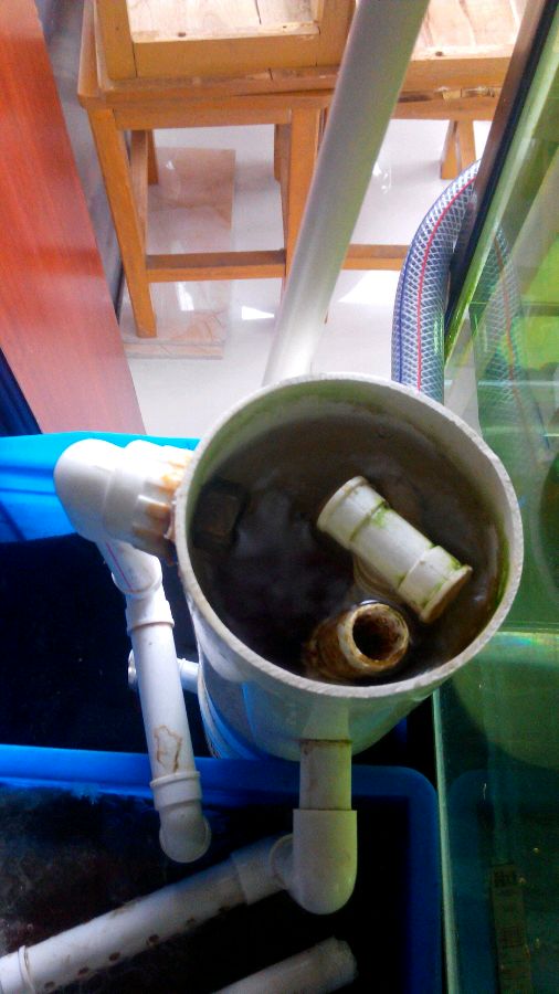 我现在在想如何做一个简单方便的收集鱼粪的管路,不用太复杂,只是不让鱼粪过多的流到下滤中去。初步已经有个设想了。