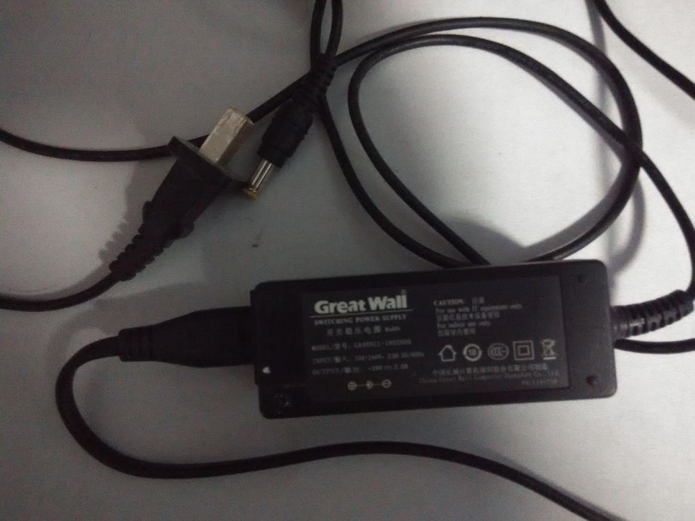问题 外壳有损坏 拆过机 电源适配器是长城的 不知道是否是原装,但是电压和电流参数都与笔记本要求的一致