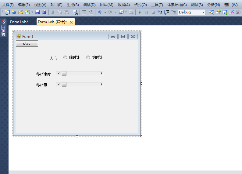 编写一个程序,实现按钮沿着窗体的四周移动,可调方向速度,还可停止与开始。