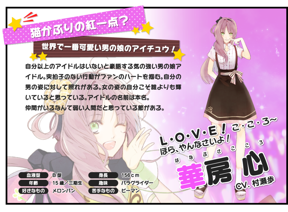 在角色介绍里找到这个↑点击有惊喜哟【其实是歌曲试听