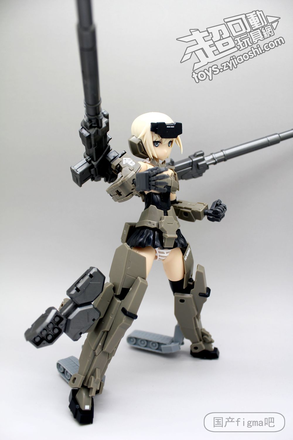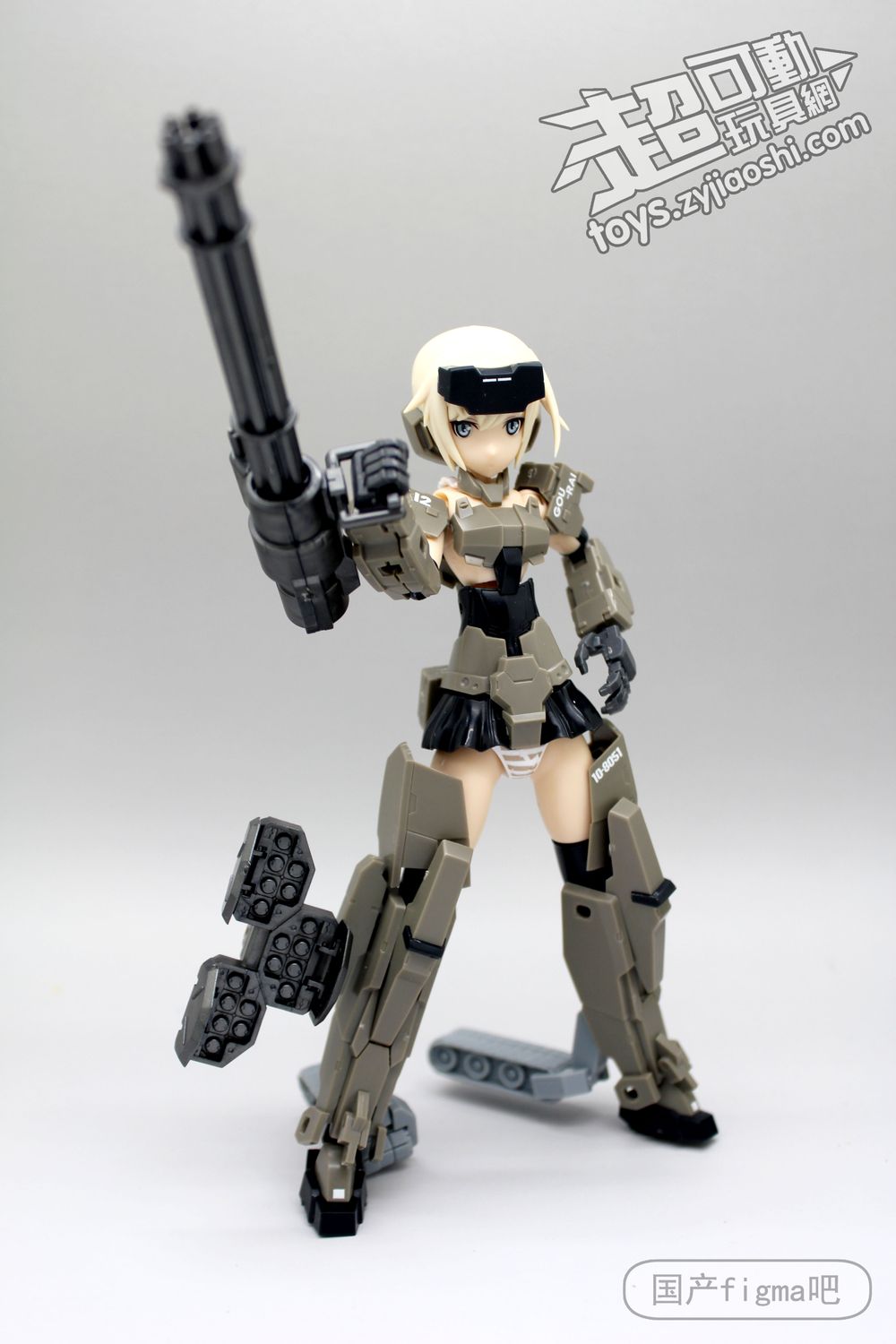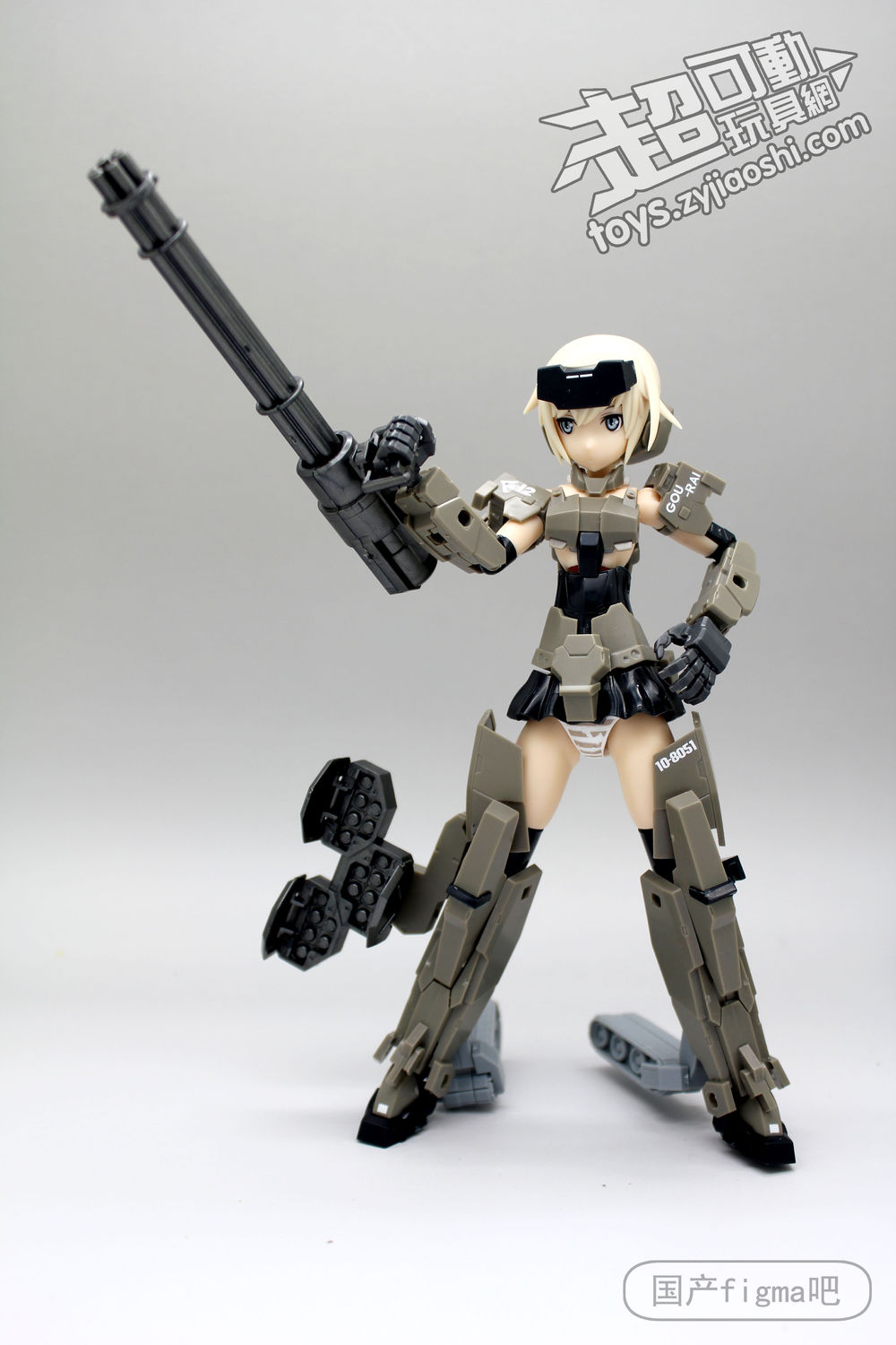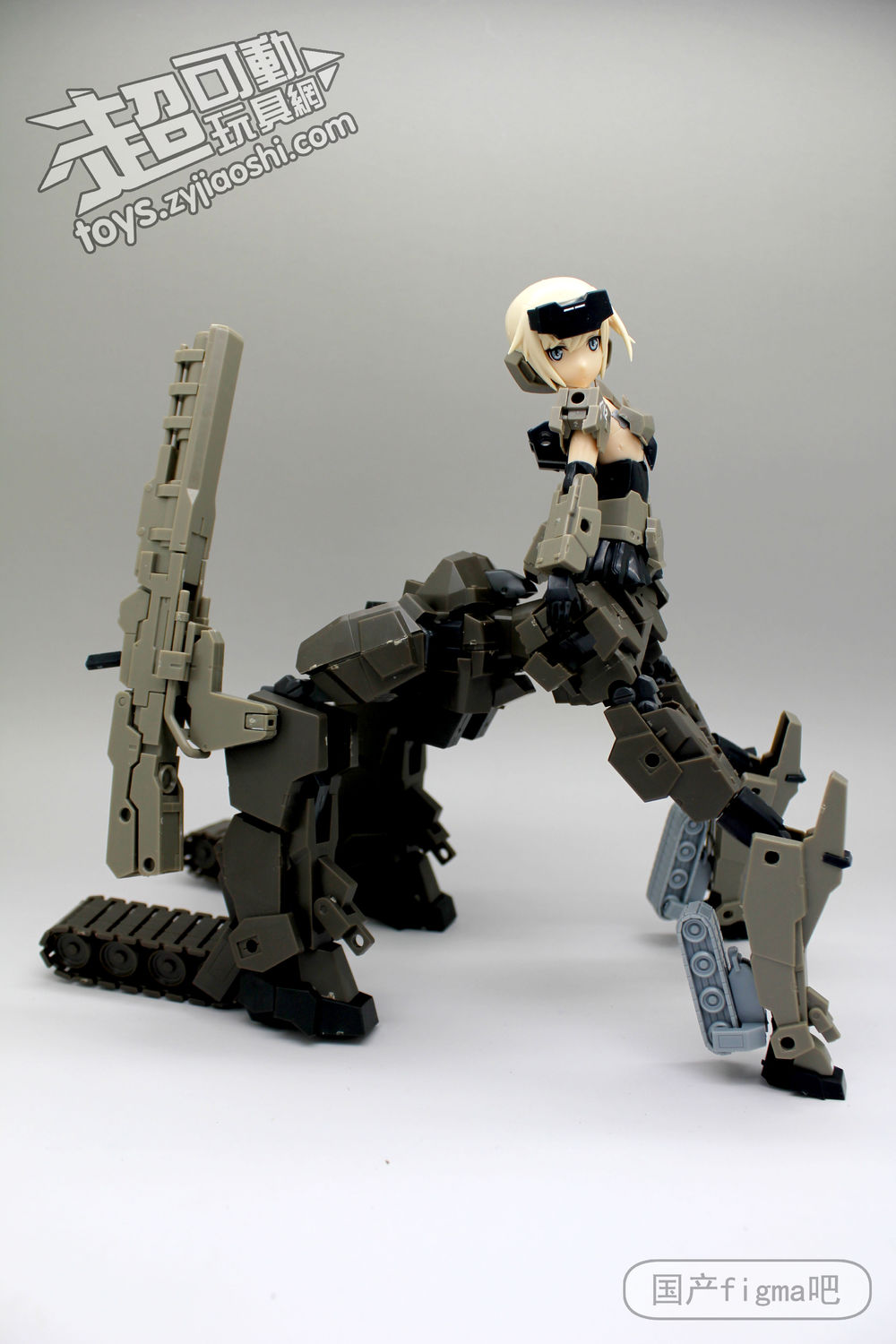 但仔细看,其实相似处非常多,从侧面来看,可以看到肩甲、腿甲、手臂、履带等等结构基本都是一样的,只不过机娘版本对粗矿的曲线做了调整,粗壮的手臂和腿部改细了。