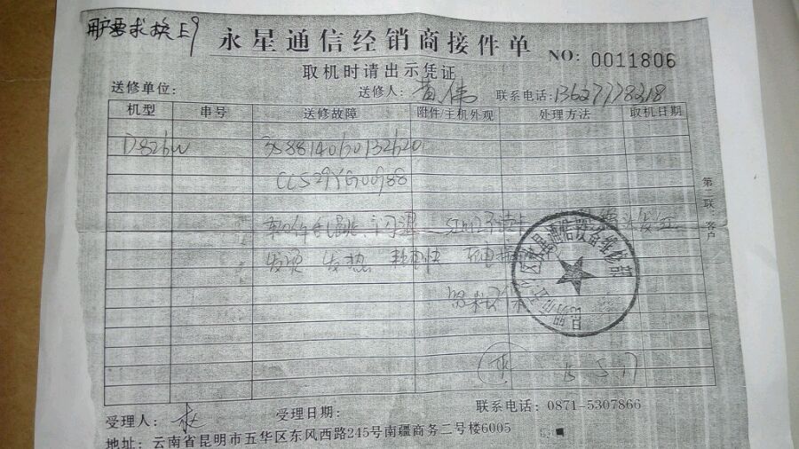 HTC826w接机单问题描述+维修检测单
