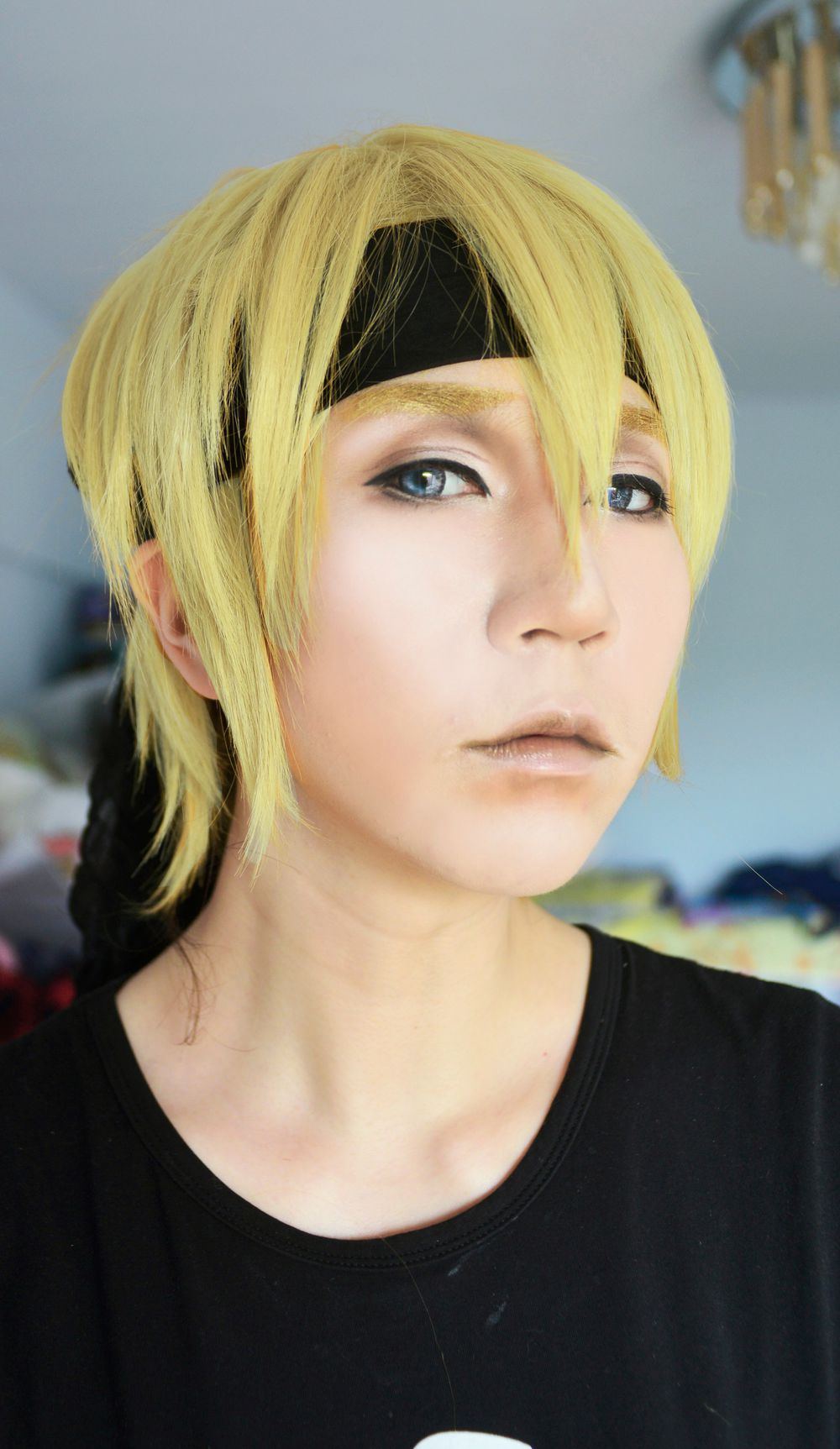 好不容易试一次全脸啊,这个还是我大一的时候的计划呢,后来不追漫画了,就弃了。昨天翻电脑图册的时候突然翻到,兴起就试了一下。假毛临时也找不到像的,头巾是室友的纱巾→_→。。。