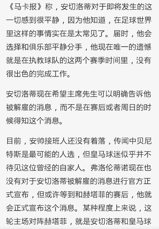 悲催!!曝安切洛蒂已知自己被解雇!