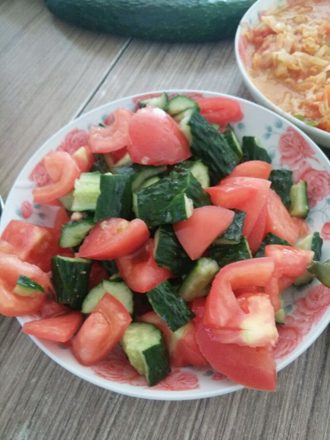 没错,你看的没有错,这就是传说中的西红柿拌黄瓜