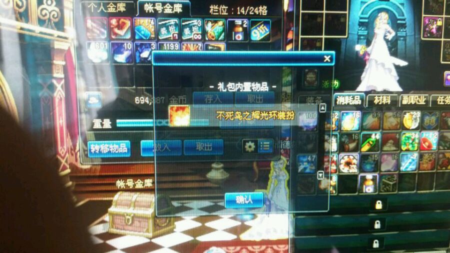 先创个号,拿出里面的不死鸟武器带上, 买一把11的武器 武士刀不限品级 然后拍卖买个不死鸟强化器 然后点强化来强化11的武器 然后就换成小号领取光环(账号绑定)