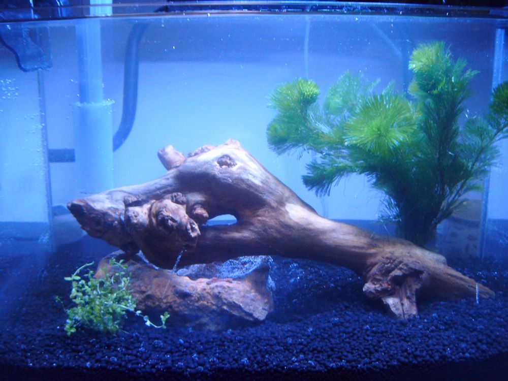 木头是自己捡的沉不下去就用老爹的一块破石头绑上了!买的时候感觉迷你缸看着可爱!