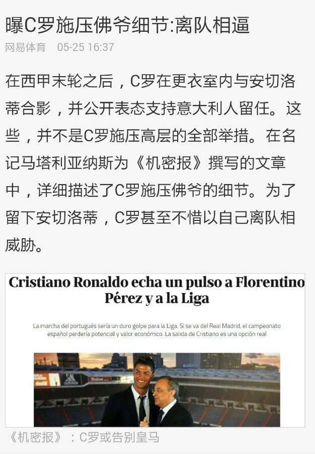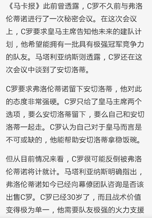 曝C罗施压老佛爷细节:离队相逼