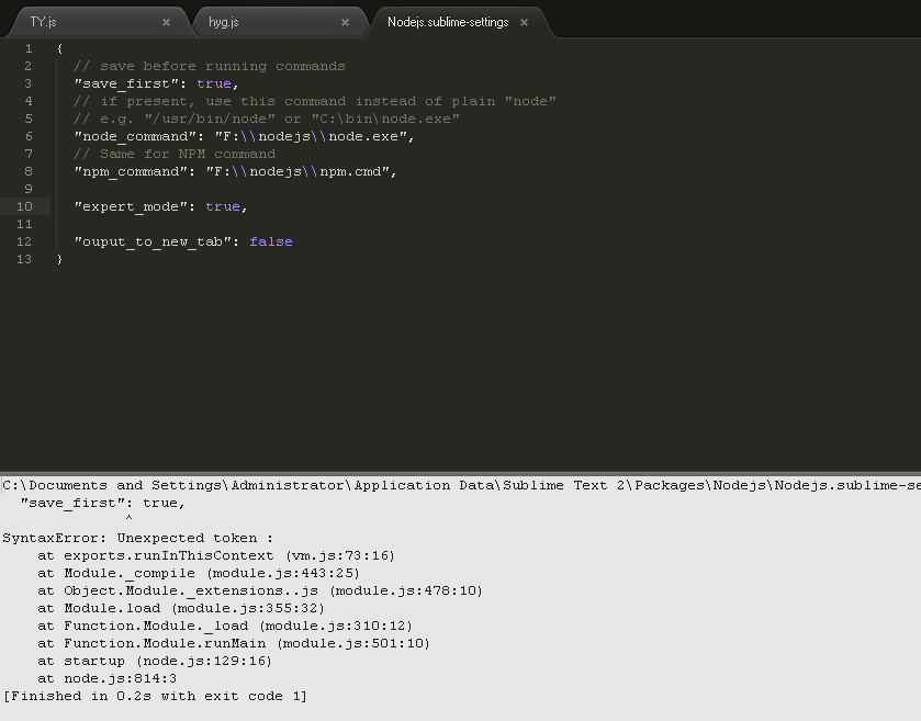 7 C:\Users\Administrator\AppData\Roaming\Sublime Text 2\Packages\nodejs\Nodejs.sublime-build进行修改,附我修改内容如下: