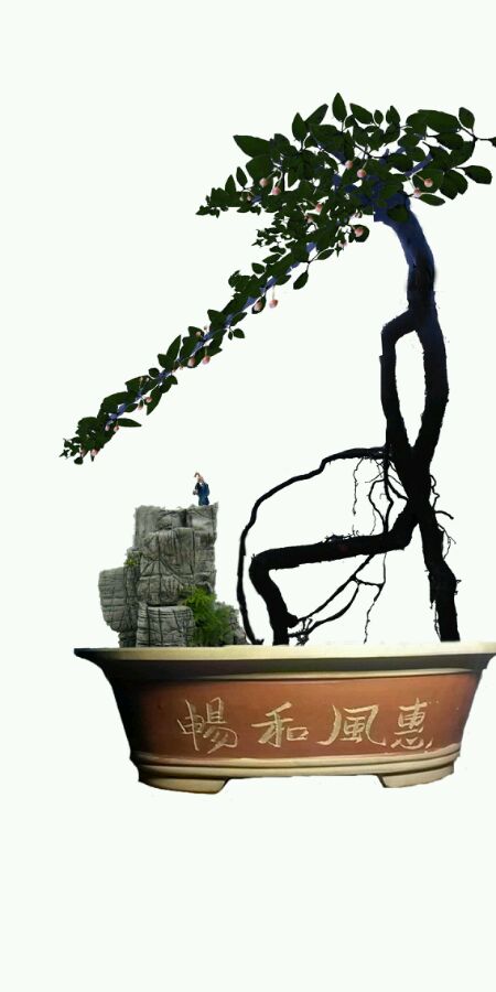 优点是顶部枝条丰富可操作余地很大,缺点是主杆很高,无枝条,上粗下细也不符合文人木的要求。考虑一下附石吧。或者高压截去大部分主杆,做个临水式。个人愚见,多多包涵!