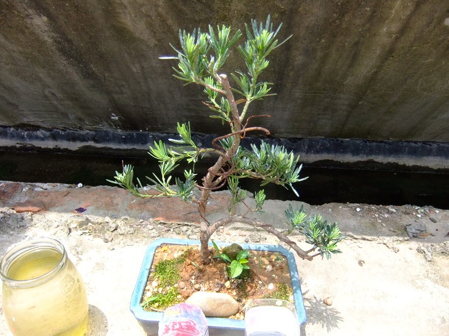 后面小心翼翼的把左边下面一枝的铁丝卸掉,过几天这枝就发焉,最后不幸去世,只好剪掉,变成下面的样子,哎,还是有那枝比较好看点