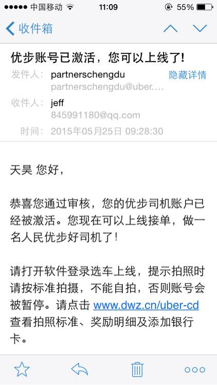 (150526)Uber发邮件说我通过审核,苹果手机端登陆不起