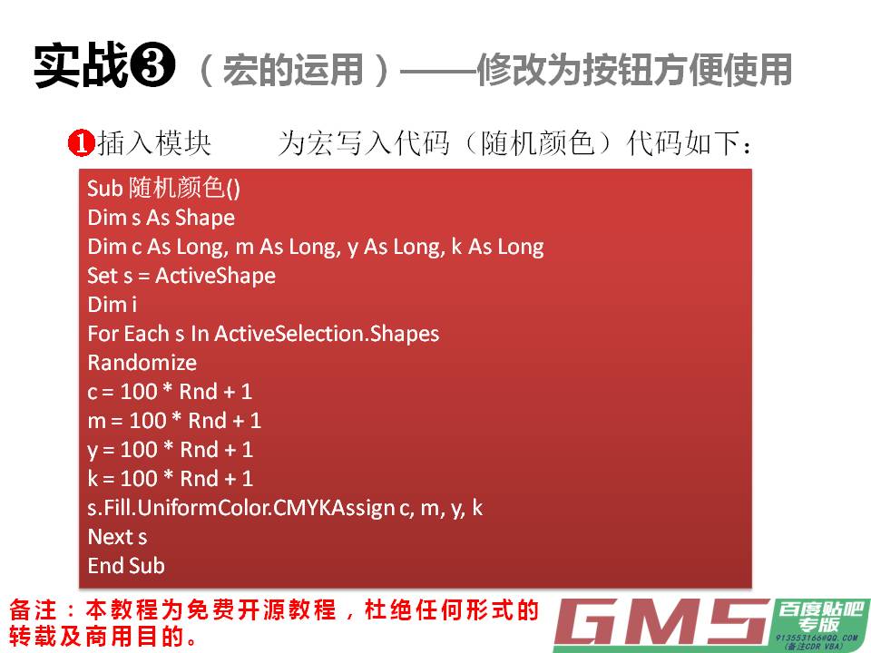 楼主写这样稀缺教程很值得称赞,但是对于VB宏的应用,最关键的因素在于编写,代码的编写格式,对象模块功能命令的代码名称,多组命令的交互应用,创建能即时自定义的插件。才能真正解决问题,只有这样使用者才能方便的将自己编写的VB插件嵌入CD软件操作界面以便随时调用。