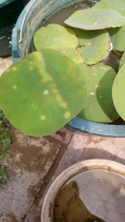 这两天碗莲叶子出问题了,但是研究半天不懂,前几天上过肥料,大盆10粒缓施肥,小盆6粒,放中间水管里了,给看下是不是肥多了 ,还有就是前天我喷除草剂除院里杂草了,有没有可能是不留神溅上去的,因为向日葵也有这症状,碗莲不是所有都这样,3盆出现这样