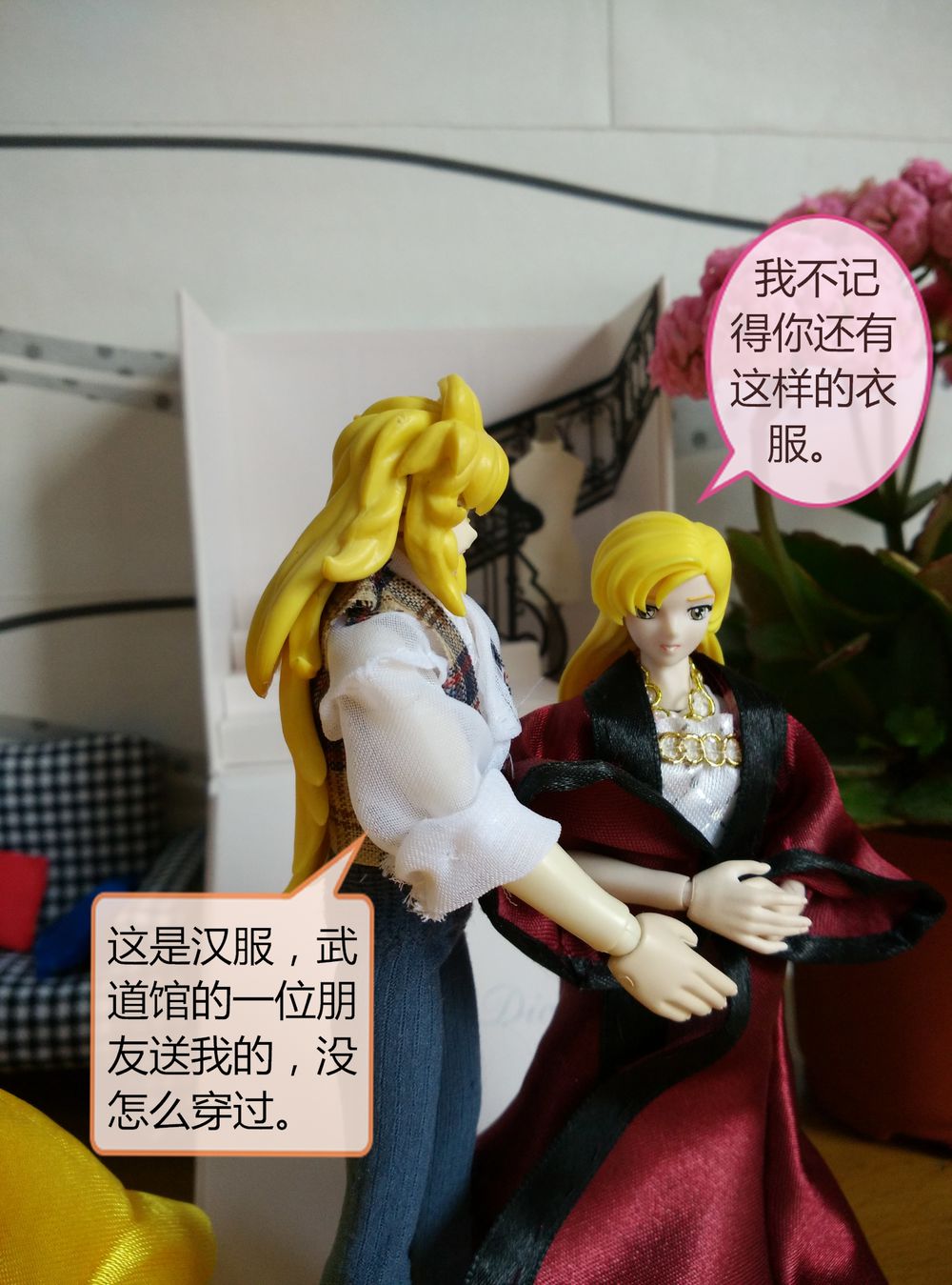服装是自己做的,道具也有一部分是DIY的,场景靠平时收集的各种包装盒