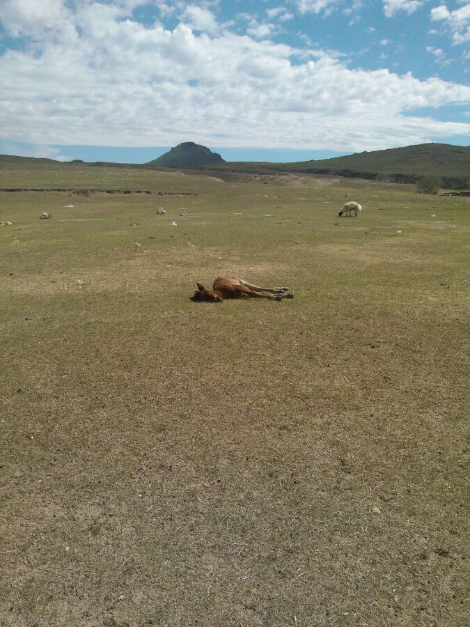 走近了,小马就会惊醒,小马除了吃奶就是睡觉。