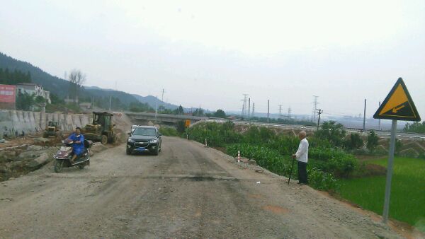 第一张就是,左边工程车辆还在加紧弄,右边是临时铺设的路面,前面的桥就是铁路桥呀,国道改道走桥下