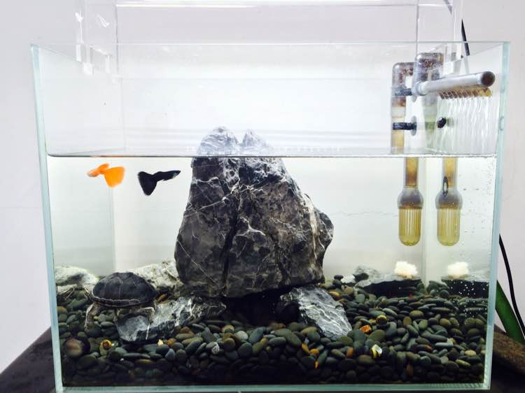 ,没几天就发现它在捉鱼,这时候我就把小鱼弄死了用镊子喂它,它就敢吃了,慢慢的就敢从我手上接食了,现在一看到我就游到水面拼命的扑腾