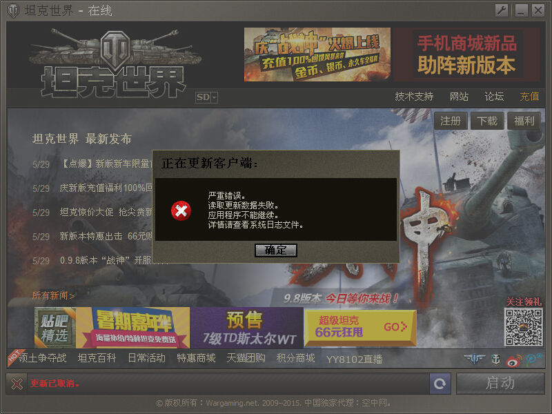 05-30【求助】求大神解答9.8更新严重错误读取日志失败怎么解决