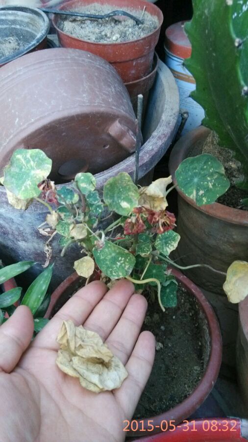 大家看看我这旱金莲是怎么啦,夏天不适合他们生存啦?我这是室外半遮阴,小家伙是室内通风二十五六度,河北。