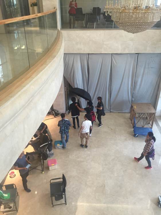 后来他又进右边的房间里拍戏去了,站起来后、我就偷偷在2楼拍了背影