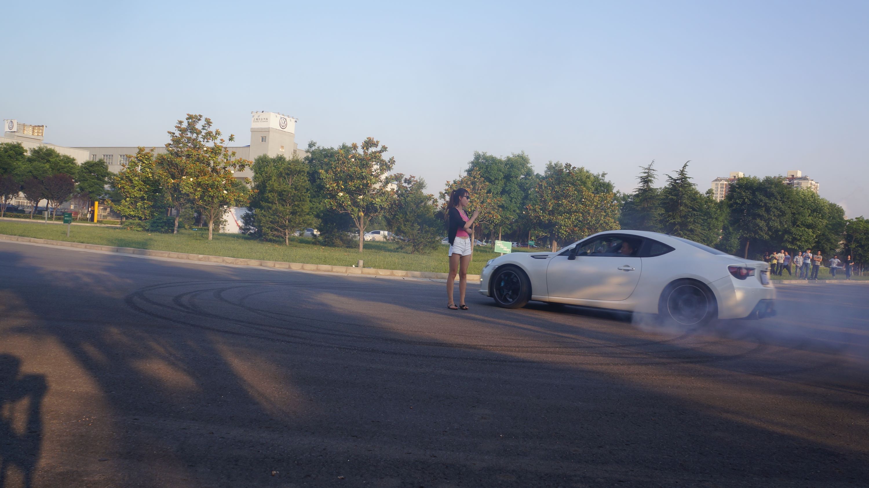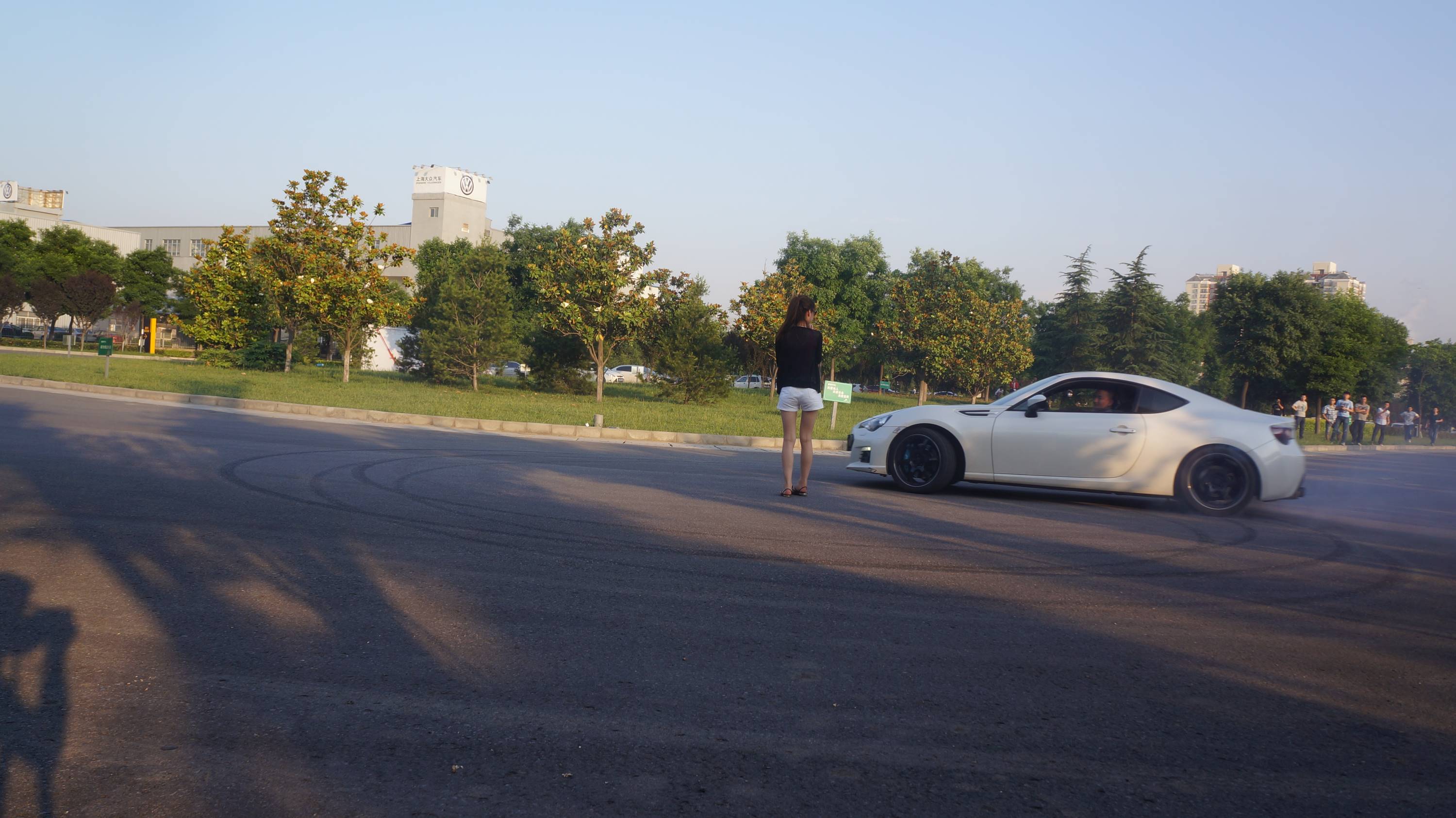 又来一台BRZ,原地甜甜圈,中间的姑娘是车主的老婆。