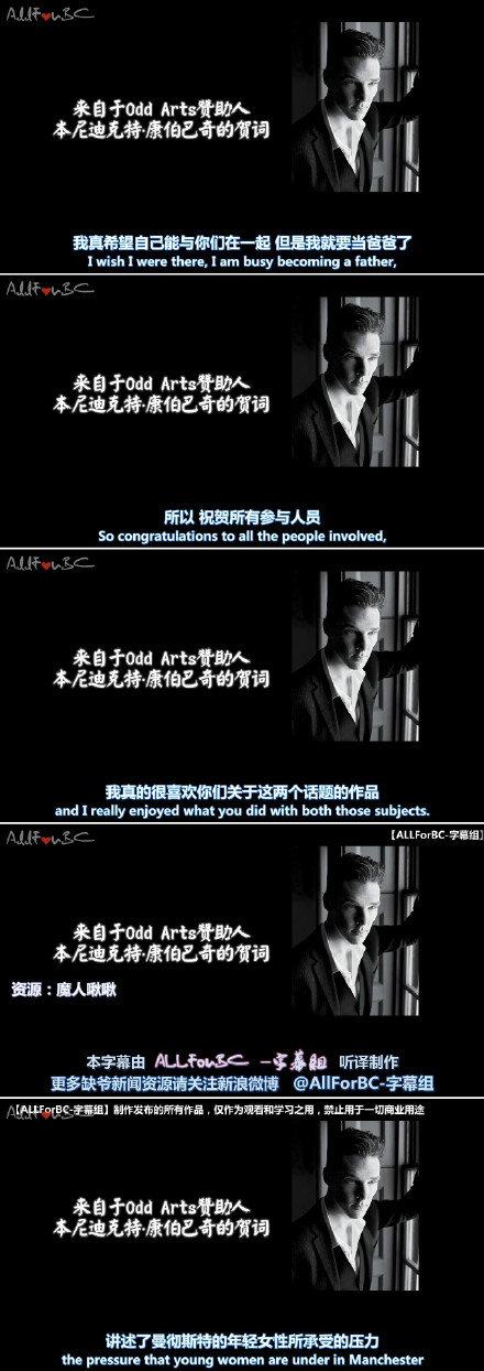 】发来贺电。Odd Arts致力于让社会弱势群体参与专业艺术创作,以建立更加和谐安全的社区,改善他们的生活状态。听听热心公益的本尼都说了什么吧~