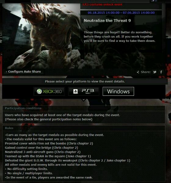 :不用联机 去生化危机的官方网站去 正版兑换 按照它上面所给的要求 只要满足了就能得到一张兑换券和一些积分 积分是拿来兑换ex2的人物皮肤 只是一个要6w