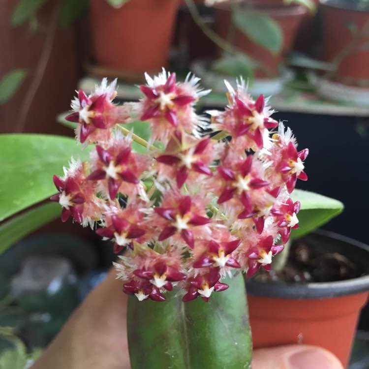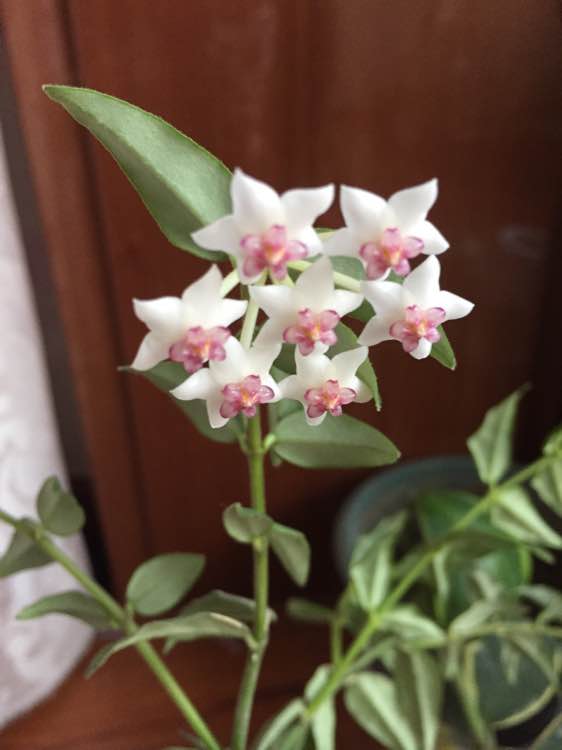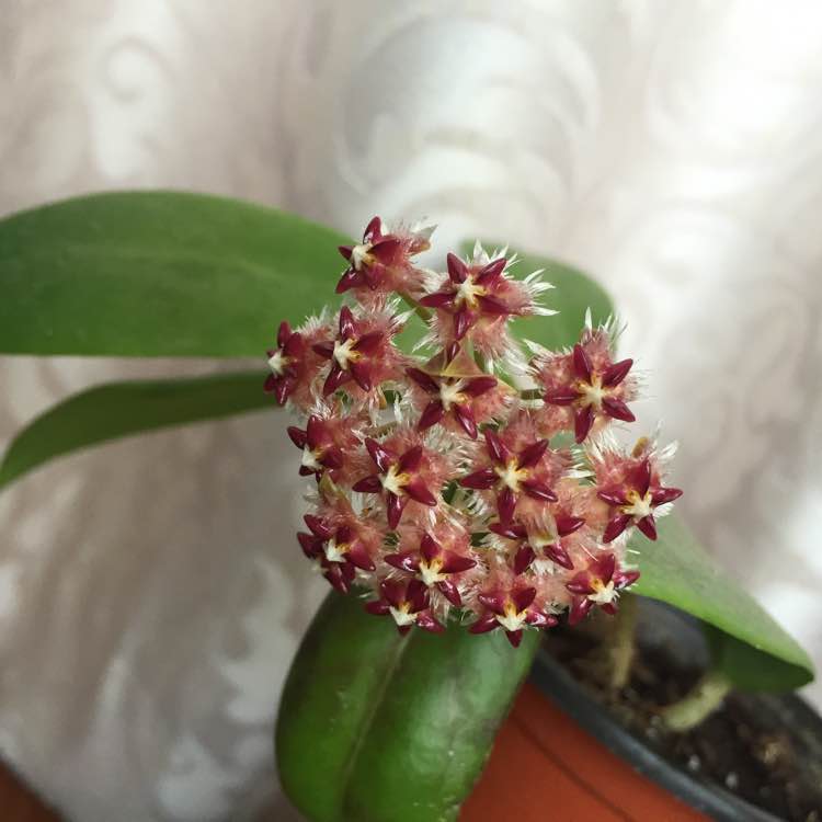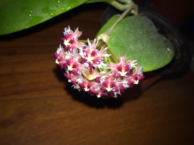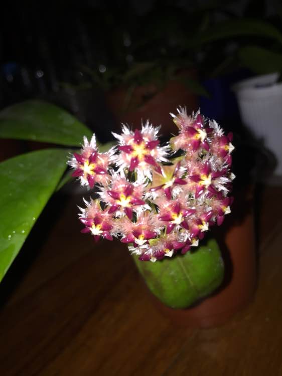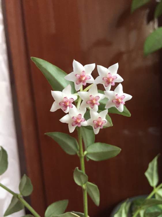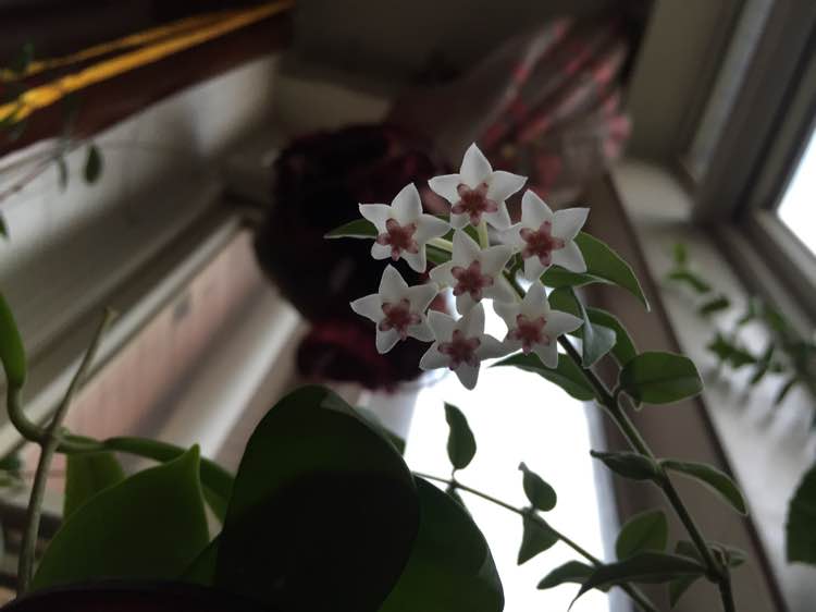 球兰放在室内窗台边,有充足的散光,其他就是正常养护,最近有花苞后浇了磷酸二氢钾。和清水交叉浇的。