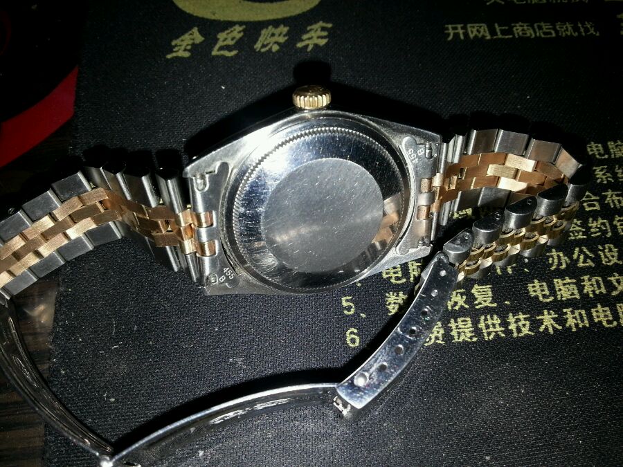 表头真1601,表链不是原装,是否真表链把表扣印记拍清楚。如果是真表链整体那一万二左右,如果是价表链那万之下。