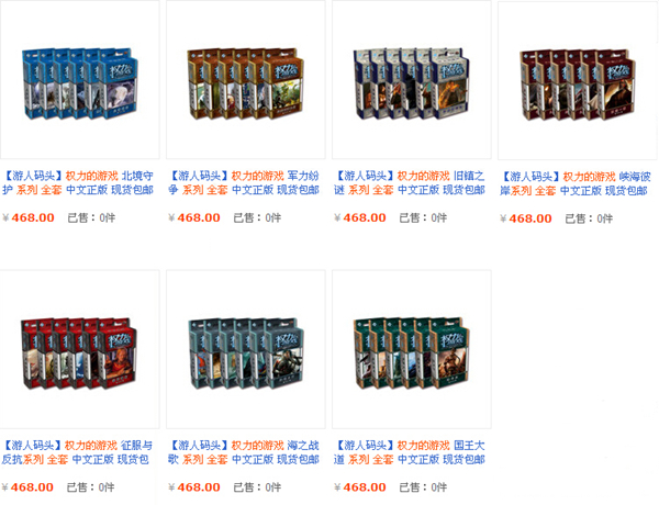 活动内容:1. 自6月9日起,凡在游人码头官方淘宝店购买任意桌面游戏产品每满98元(不含牌套等游戏配件及运费),即可免费获赠价值468元的《权力的游戏》中文卡牌版章节扩展任一系列(每个系列6包)。