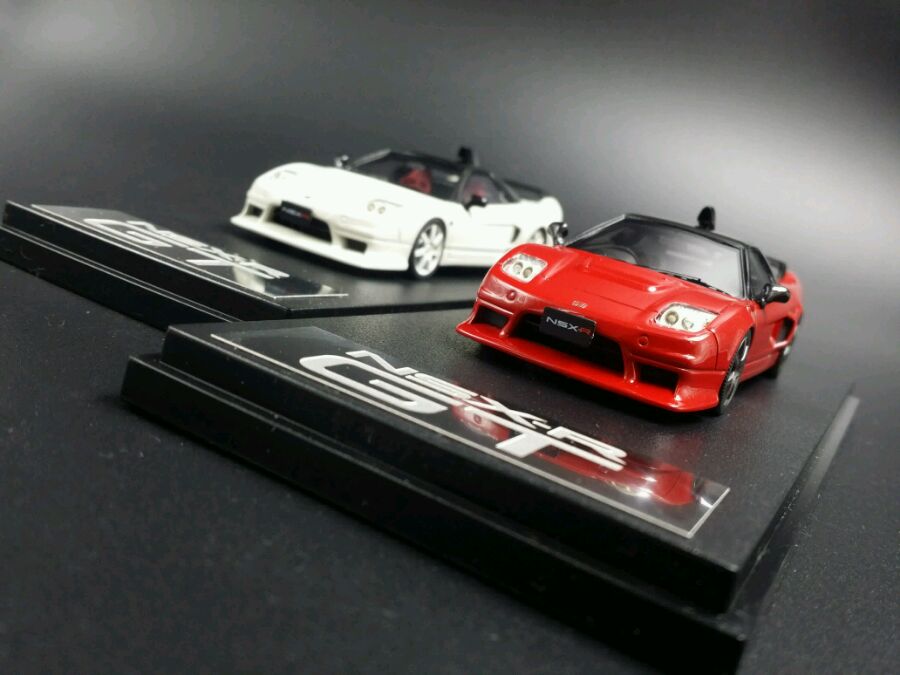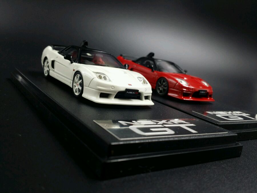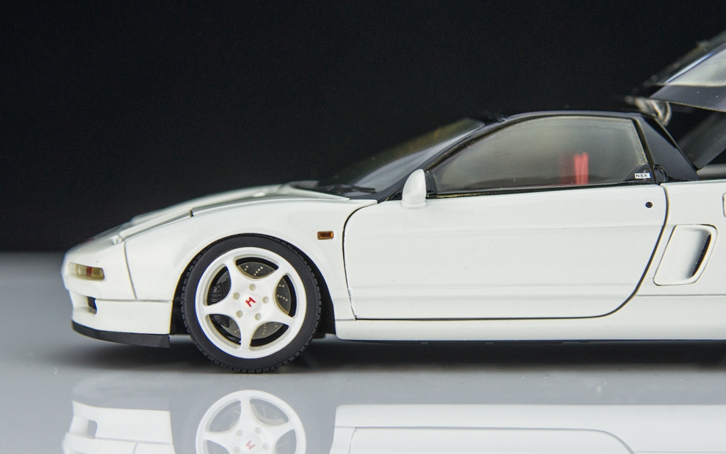 这次模型是NSX-R Na 1版,1992年本田为了彰显NSX生于赛道的血统属性,推出了NSX的“竞技版”NSX Type-R(R=Racing)。将不必要的隔音物料、音响系统以及空调系统都去掉,将车重控制在1230Kg。同时还对悬挂系统做出调整。涂装上为了纪念世界冠军,推出了冠军白涂装。